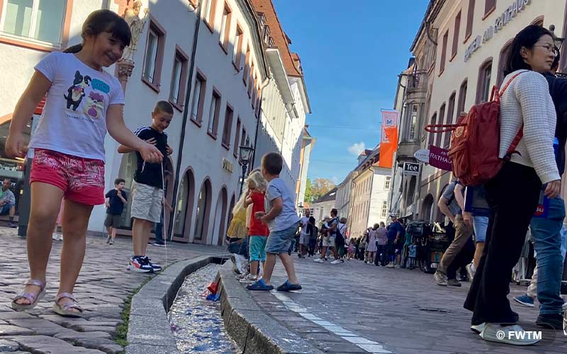 Recorrido por las zonas peatonales del casco antiguo de Friburgo siguiendo el trazado de los tradicionales canales Bächle, explicando su origen medieval y su función en la vida cotidiana de la ciudad.