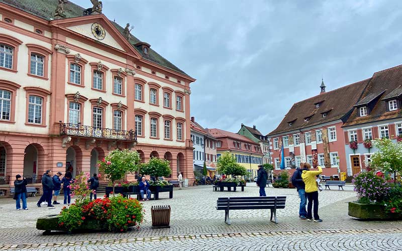 Encuentro en la plaza de Gengenbach. Introducción a su historia como Ciudad Imperial Libre y desarrollo del casco histórico.