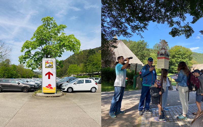 La Rodelbahn de Gutach se encuentra a unos 800 metros del museo (aproximadamente 10 minutos caminando). Muchos visitantes combinan ambas actividades el mismo día utilizando el parking del museo.